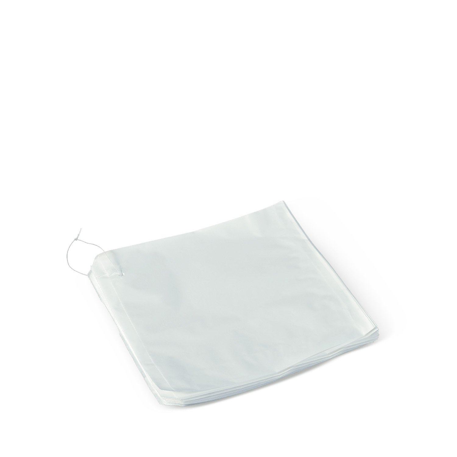 Flat bags are made with good quality white kraft paper. They're ideal for holding sandwiches, burgers, and pastries. These bags are strung for easy in-store use.