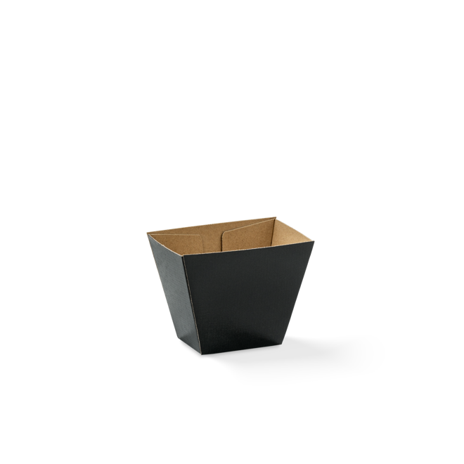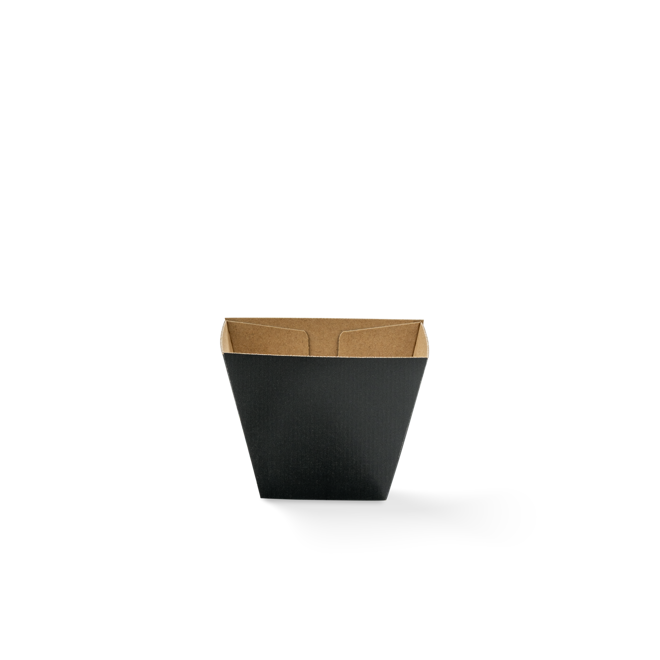 The Endura range is made with a sturdy, corrugated fluted board, so it's ideal for hot and greasy foods. It is compostable as it is made with unlined paperboard made without any plastic lining. Chip cups are perfect for serving up side dishes like chips, fries and onion rings, and are easy to hold in one hand. They're offered in natural-looking brown, with space for branding with stickers or stamps.