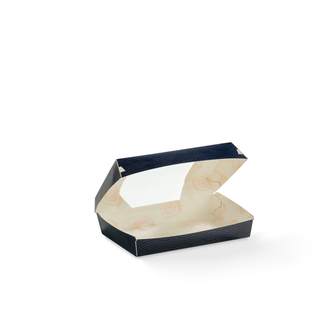 Crafted from paper board with clear PLA windows, these cartons showcase your food beautifully while keeping it secure and easy to handle. Features like a click-lock design and non -stick board ensures contents stay fresh and are enjoyed as intended. Plus, with custom branding options , your packaging will stand out on any shelf.
