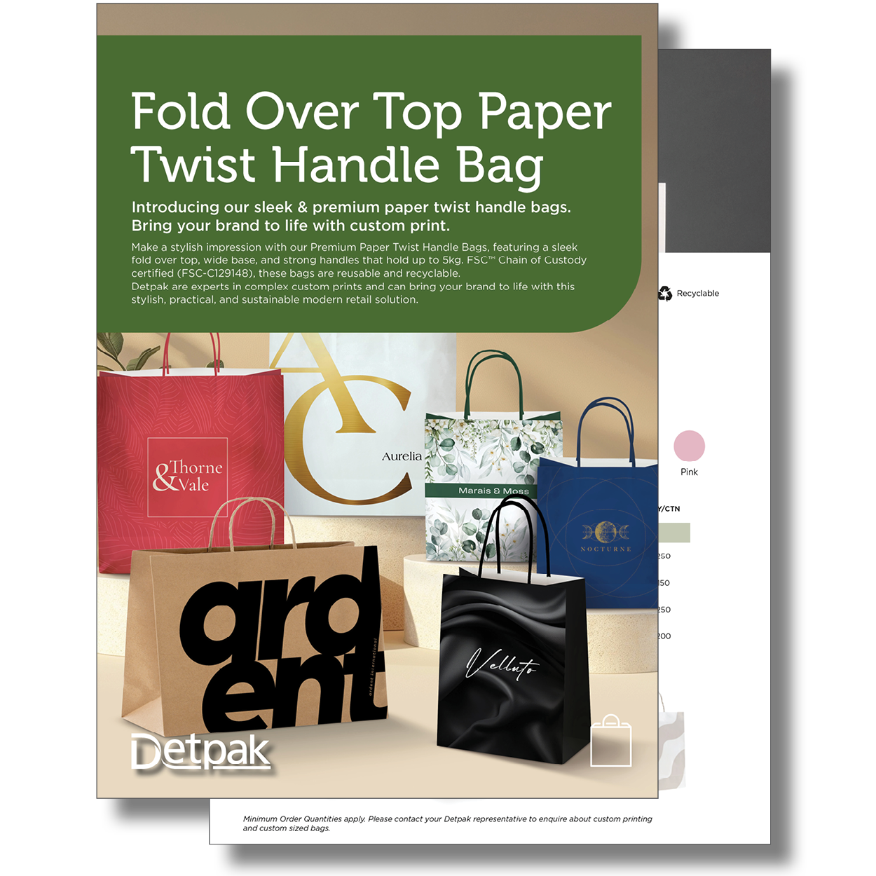 To keep all information about our Fold Over Top Paper Twist Handle Bags easily accessible at your fingertips, download our flyer.