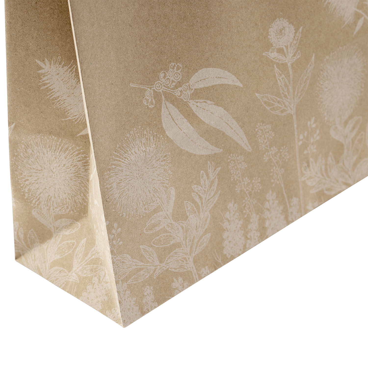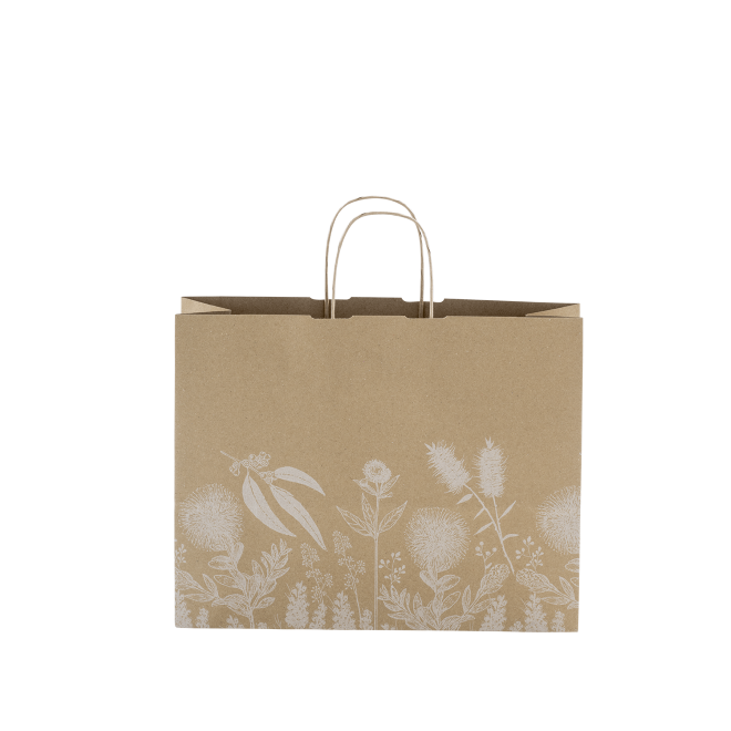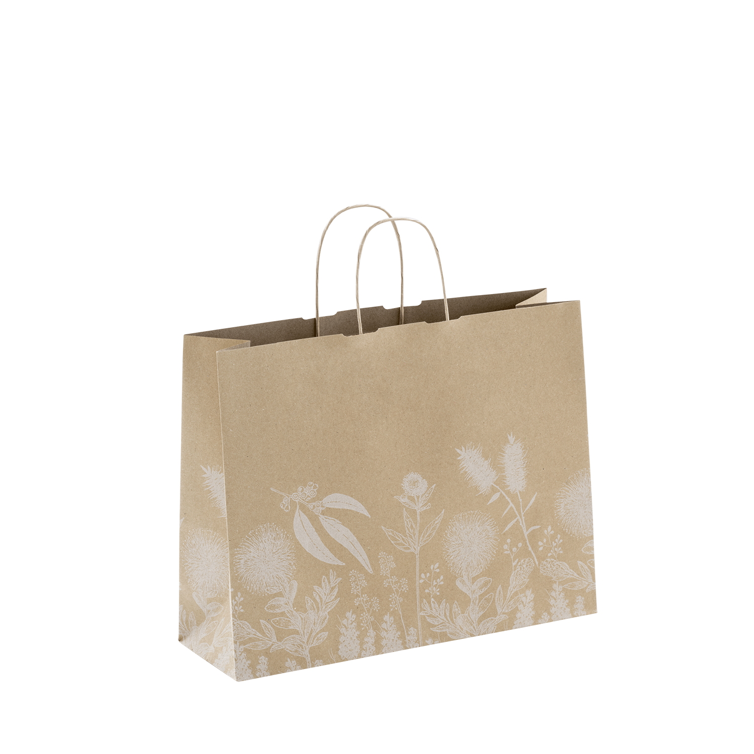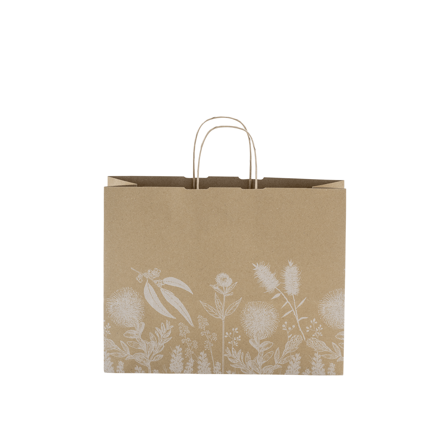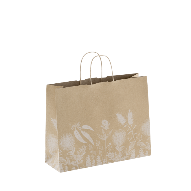 Made in Australia, these brown carry bags with paper twist handles (PTH) can safely carry up to 14kg making them strong for heavier items like candles and other homewares. Standing upright the Paper Twist Handle Bags are easy to load and are supplied with the handles out to easily hang at retail checkout points taking up less flat shelf space. Made from recycled paper these bags, available in a range of sizes, are perfect to carry single or multiple apparel or homeware items. These brown paper bags are reuseable, kerbside recyclable and compostable.